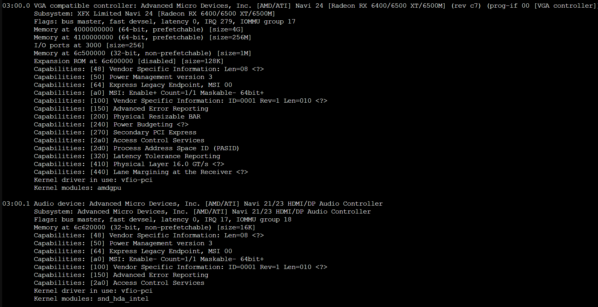 echo "options vfio-pci ids=1002:743f,1002:ab28 disable_vga=1" >> /etc/modprobe.d/vfio.conf