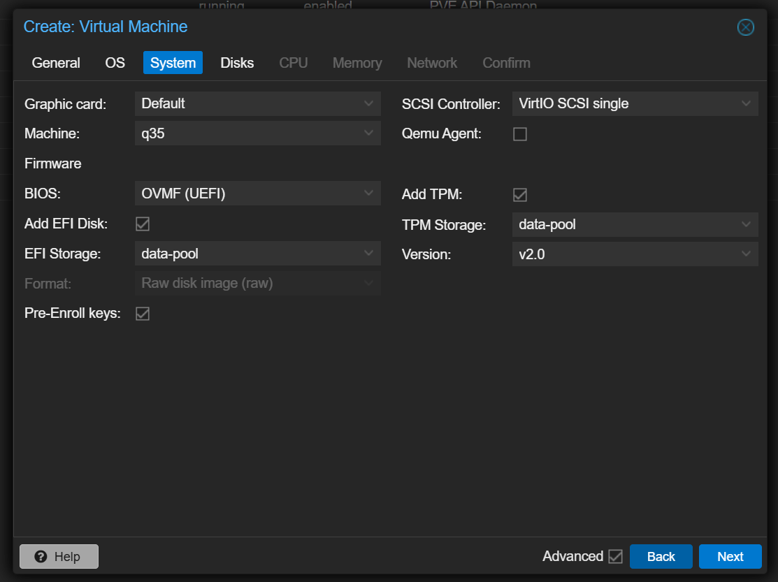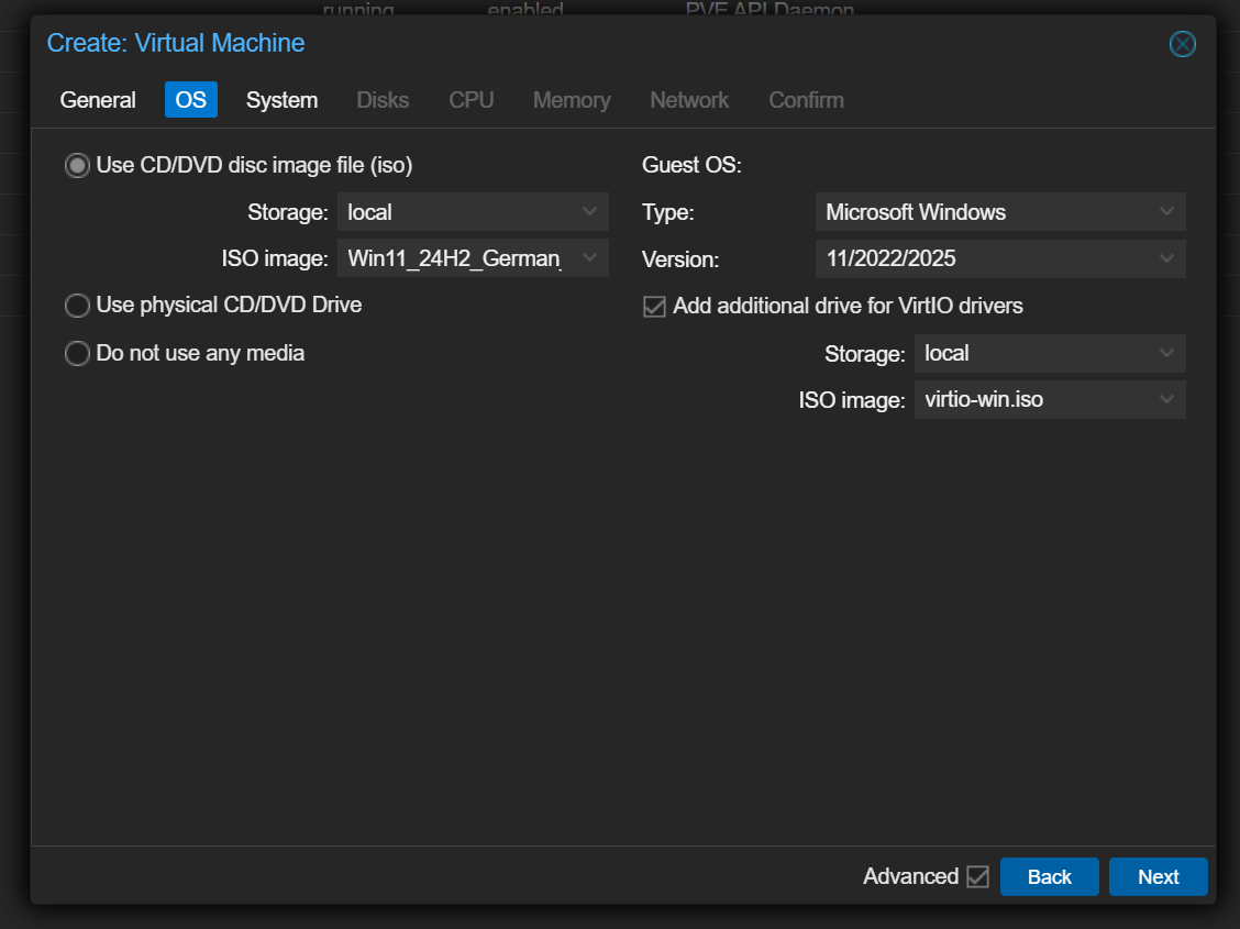 Creating a Virtual Machine is pretty easy and self-explanatory, but if you’re having issues, I suggest looking up the official Proxmox Wiki and How-To guides. For this guide, you’ll need a Windows ISO for your Virtual Machine and the VirtIO Drivers.