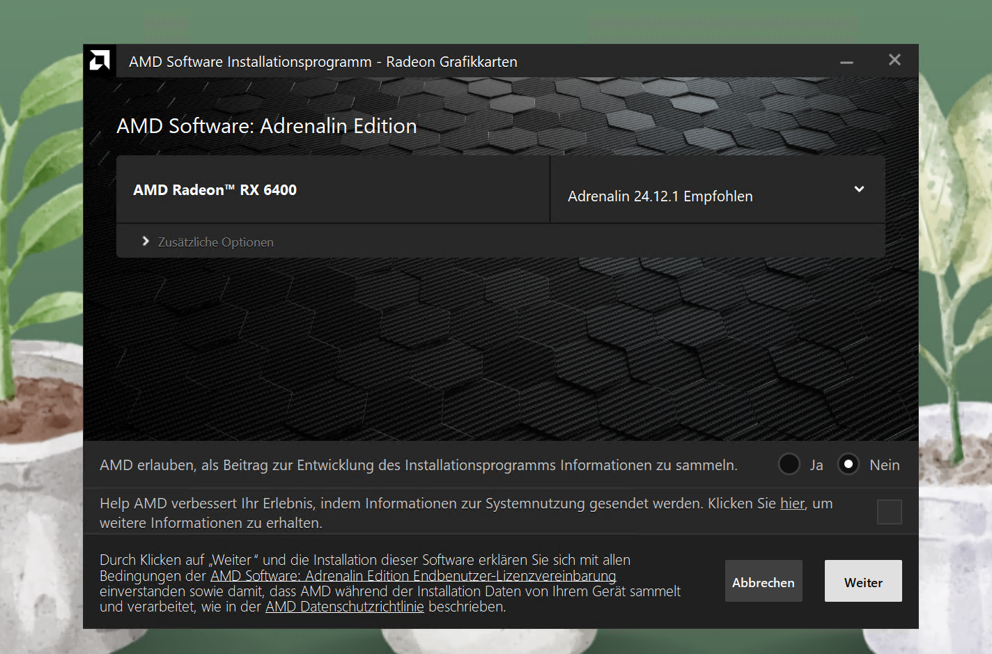 After rebooting the VM, the new configuration must be set. In conclusion, you can download the AMD Driver Software and install it. If everything works correctly, the GPU should be recognized by the installer.